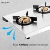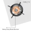 The stove features high-efficiency, heavy-duty brass burners, designed for uniform heat distribution and quick cooking, which also helps save on gas usage over time.